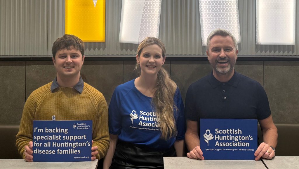 Scottish Huntington’s Association is the only charity in Scotland dedicated exclusively to providing the specialist and personalised services that families need. Its nationwide network of Huntington’s Disease Specialists gives clinical, practical and emotional support, the charity’s Specialist Youth Advisors work 1-2-1 with young people from Huntington’s families, while its Financial Wellbeing Service helps to ensure that the correct benefits and allowances are in place to reduce the hardship faced by too many.